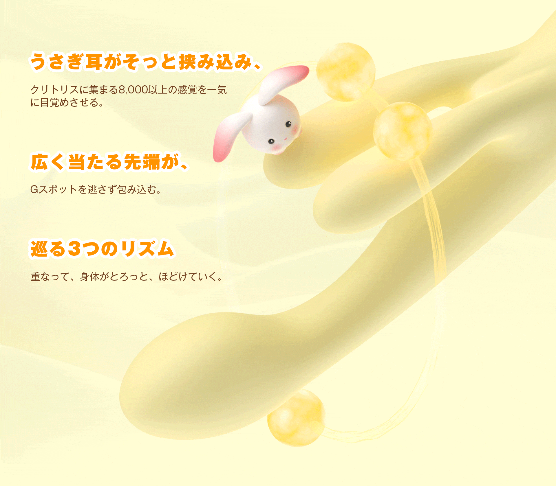 - ウサ耳型の子機がクリトリスをそっと挟み込み刺激します。